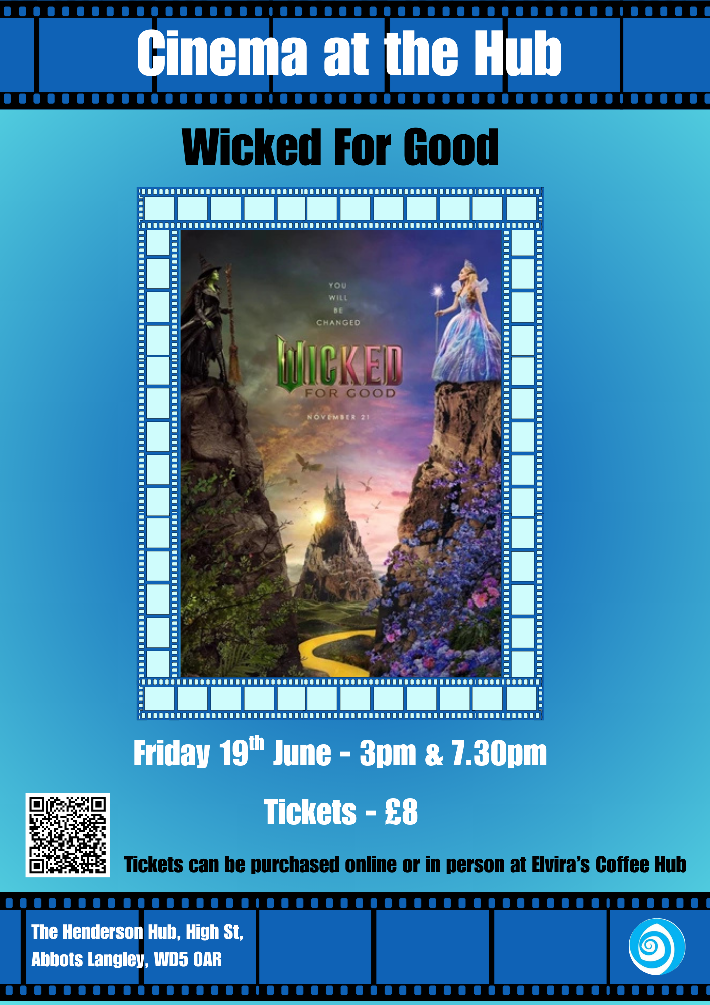 Wicked will be shown at the Hub first on 15th May and you can save when you purchase tickets for both films! Simply, book your tickets for Wicked and then email your Wicked booking confirmation to manager@henderson-hub.org.uk to receive a 25% discount code for Wicked for Good!