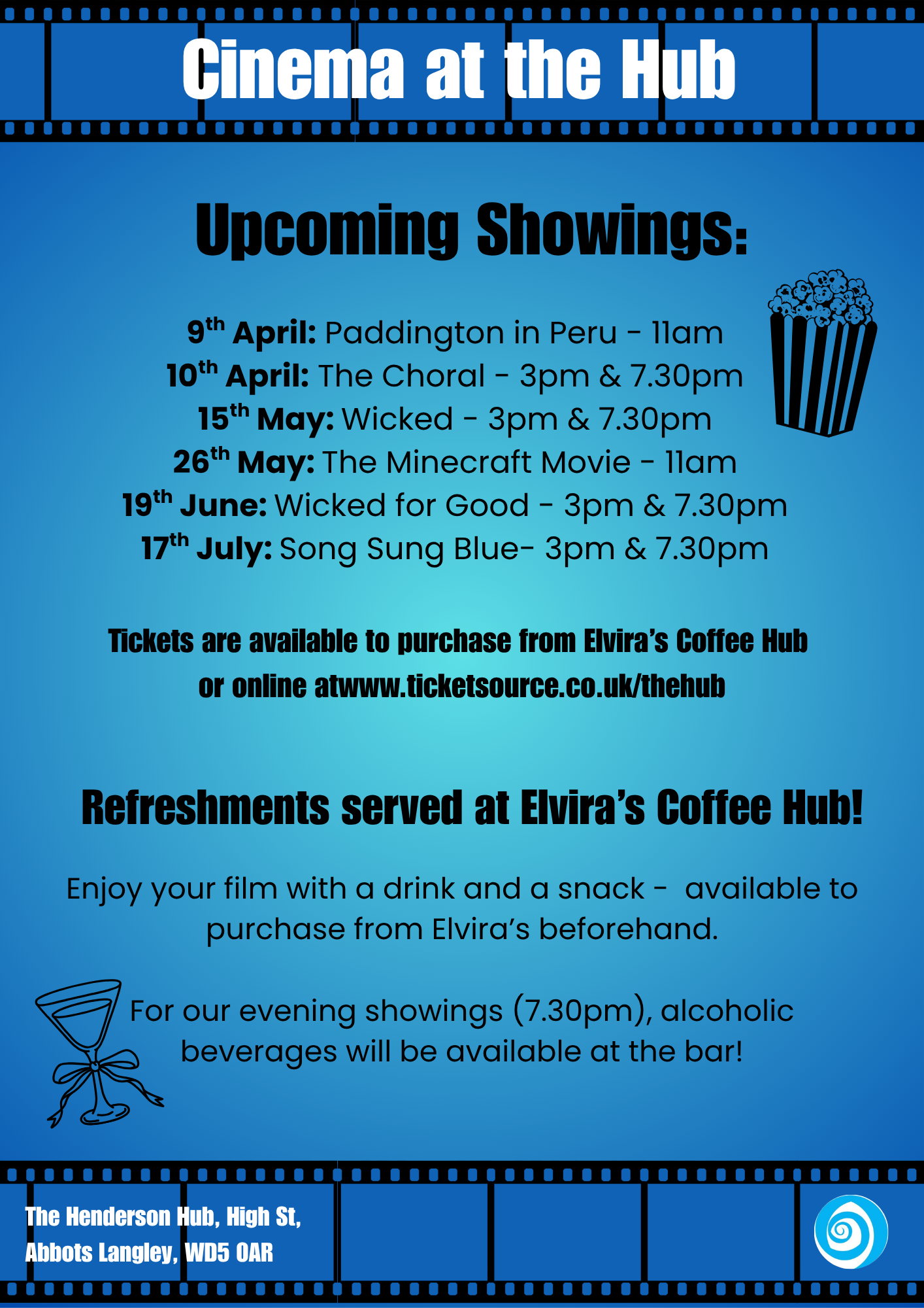 The Henderson Hub Cinema Club exists to make it easier and cheaper for residents of Abbots Langley to see great cinema right on your doorstep.